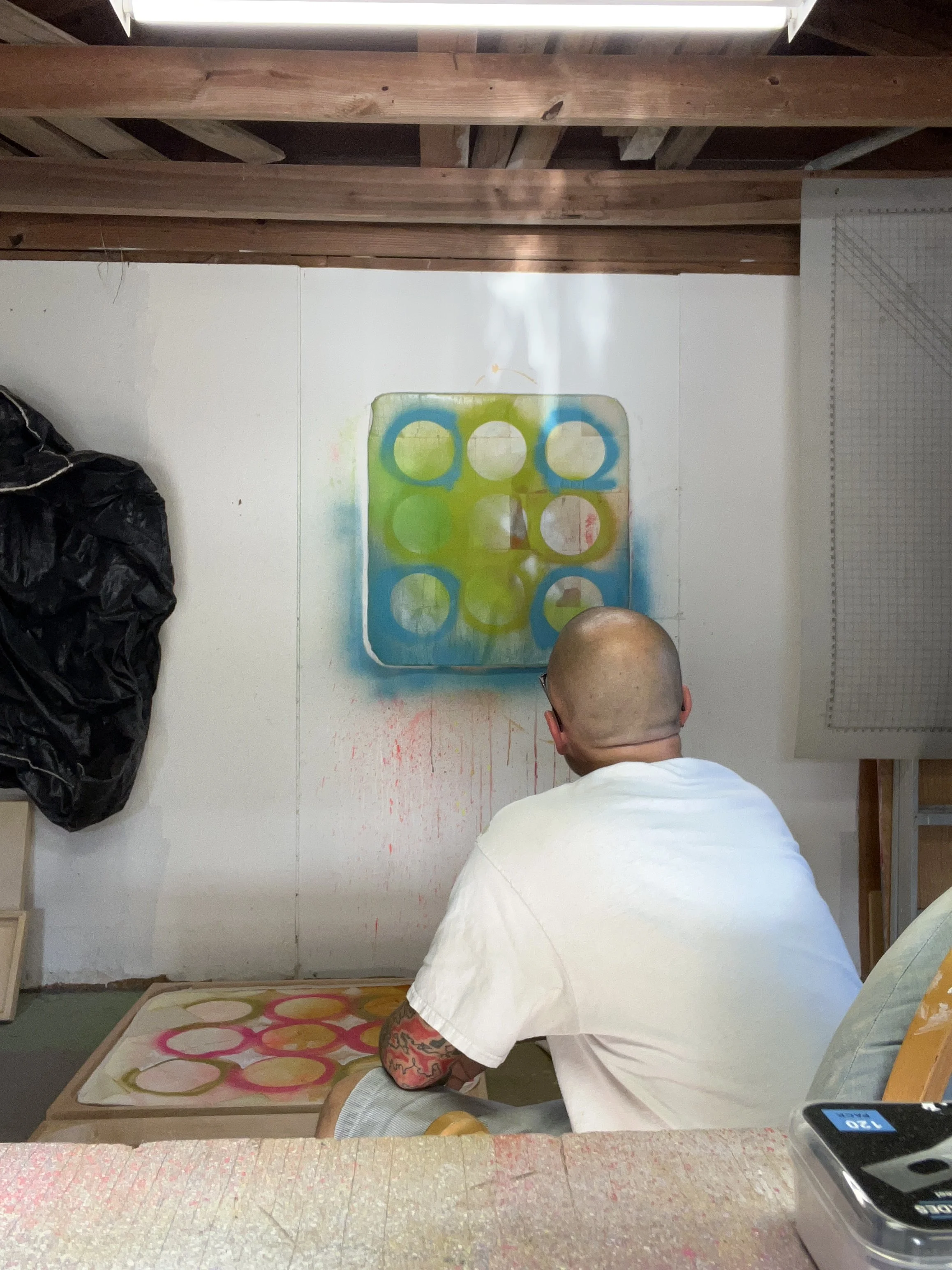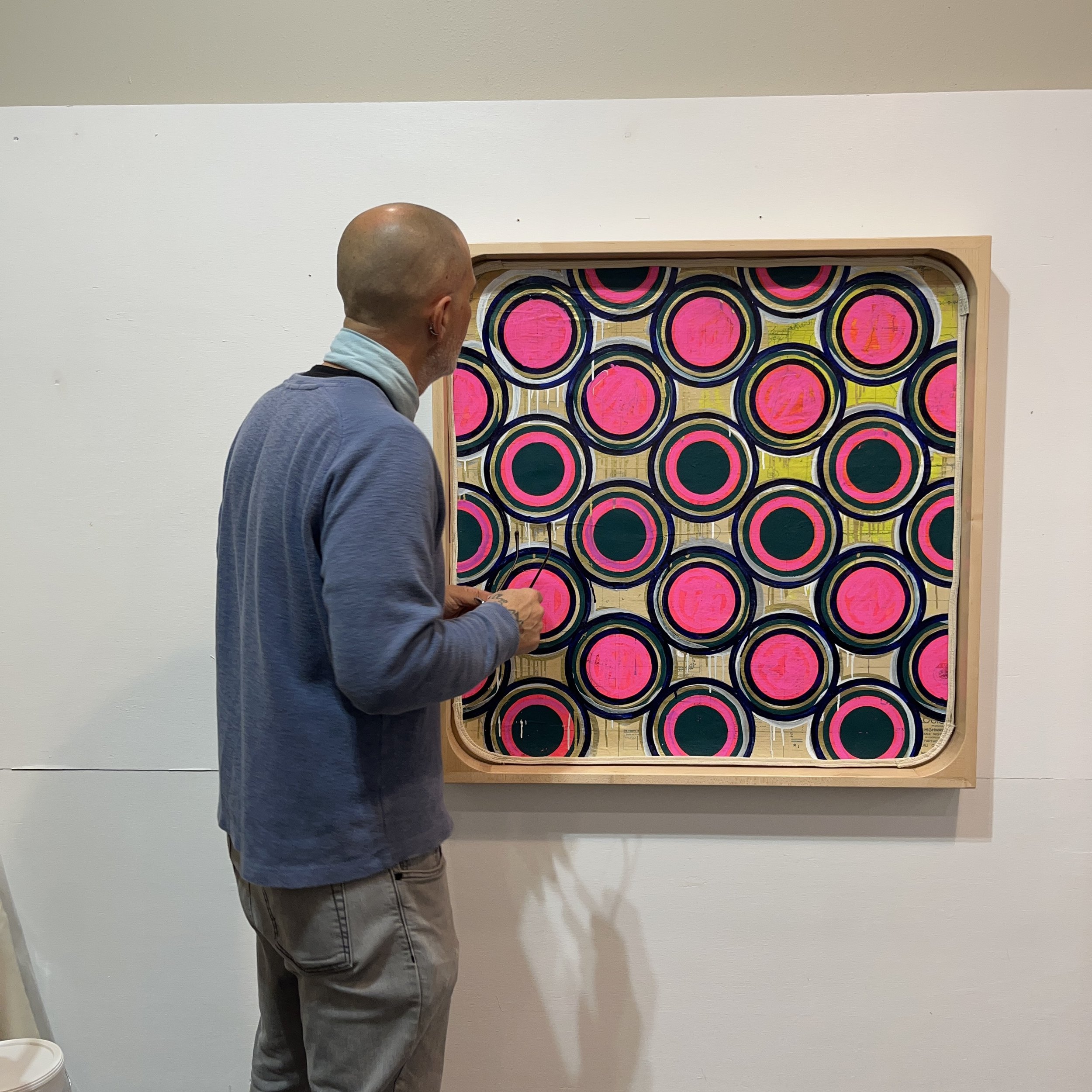 From there it shifts. The early moves can be loose and even disruptive - spray, overlap, chance - just enough to unsettle the surface. Then it tightens. Decisions get smaller, more precise. A line placed at the edge, a corner eased, a color introduced and held back.
