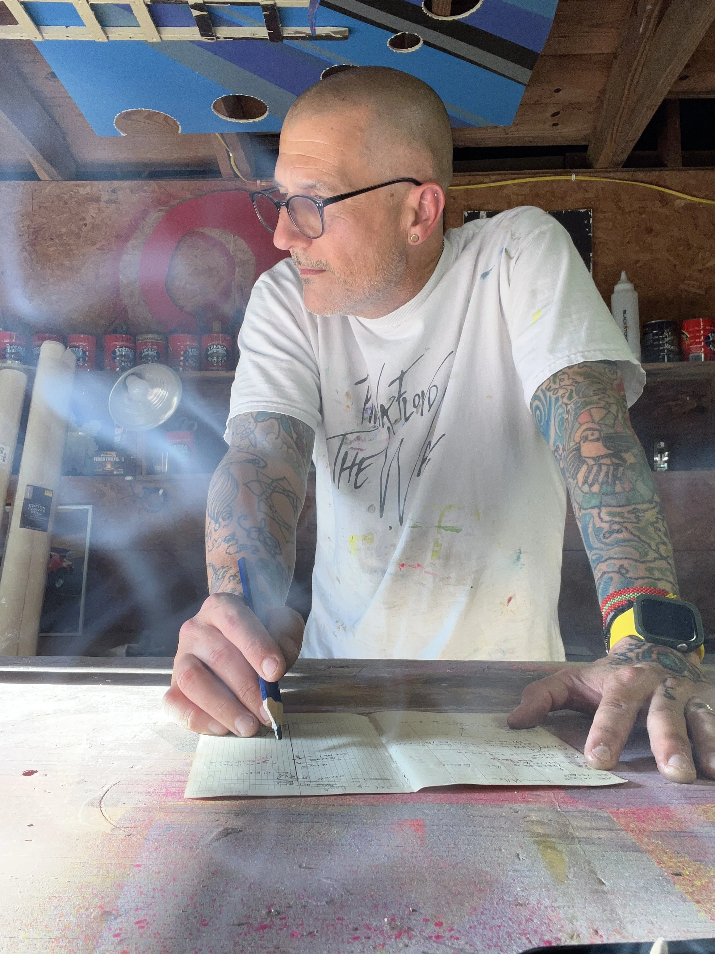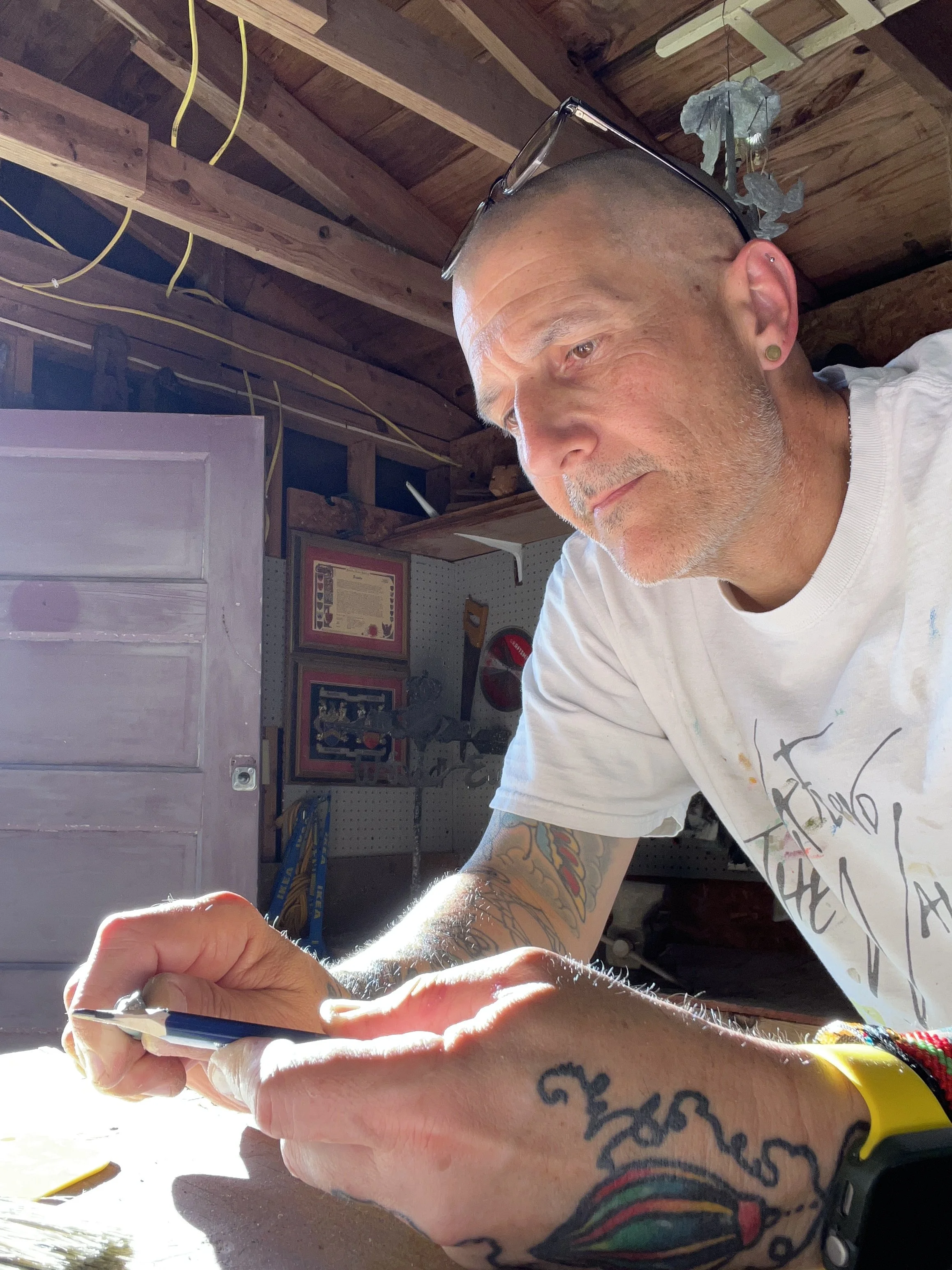 Robbie observing pages in his studio . Photo by Bit Thompson